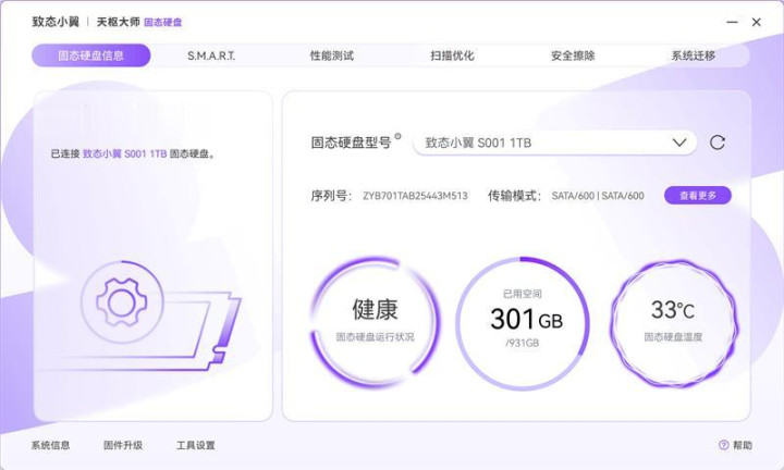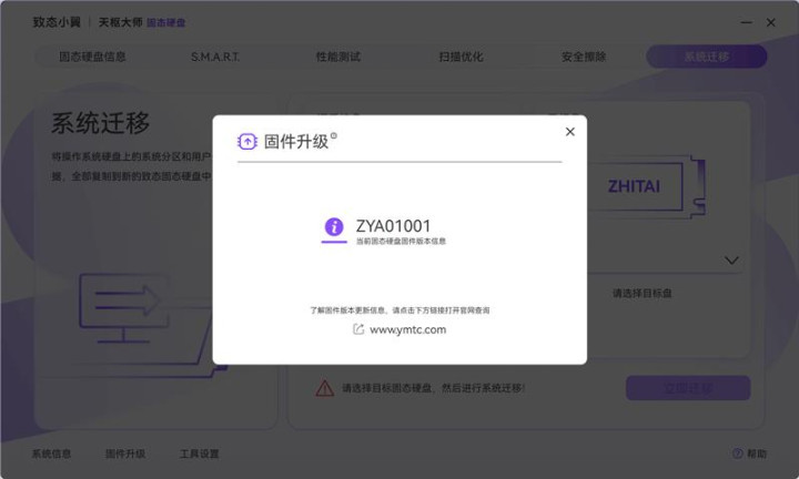 致态天枢大师软件还可以更新SSD的固件。