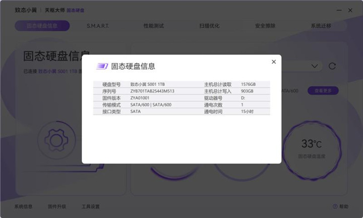 四、新版致态天枢大师固态硬盘管理软件应用体验:方便易用 免费一键迁移系统特别方便升级