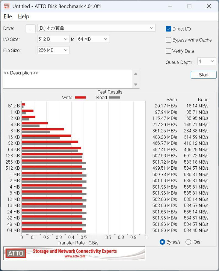 3、ATTO Disk Benchmark